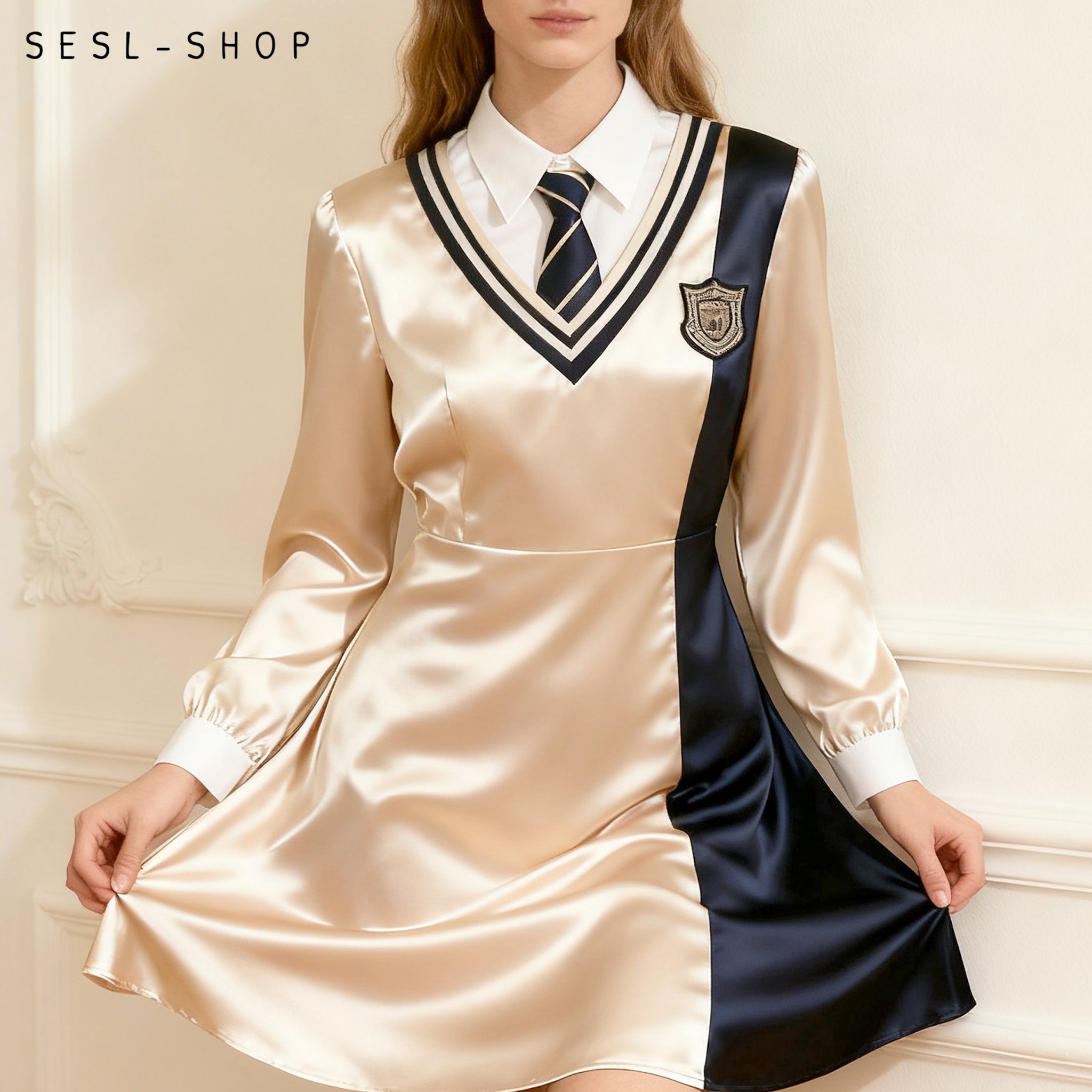 ชุดเดรสผ้าซาตินฝรั่งเศส